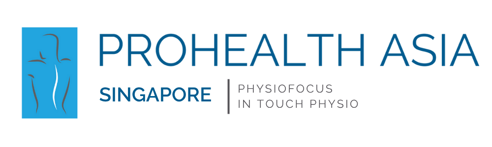 ProHealth Asia Singapore logo with a stylized human figure and the tagline 'PhysioFocus in Touch Physio'.